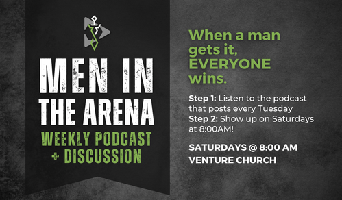 Step into “Men in the Arena” with a group of men of all ages and all stages who are on a mission to protect integrity, fight apathy, pursue God passionately, lead courageously and finish strong. All you have to do is listen to the podcast during the week and be ready to discuss Saturday morning at Venture Church!